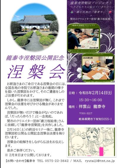 【龍泰寺涅槃図公開記念 涅槃会法要&法話 ご案内】