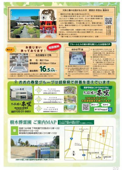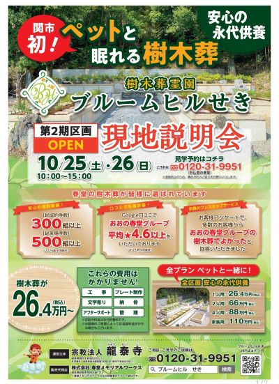 【龍泰寺樹木葬霊園ブルームヒルせき オープン・現地見学会のご案内】